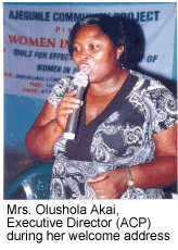 Ajegunle Community Project seeks to create awareness on the violation of women’s human rights, and facilitate the process of eliminating threats grassroots women’s physical, emotional well-being and barriers to their access to quality life in both the family and community.